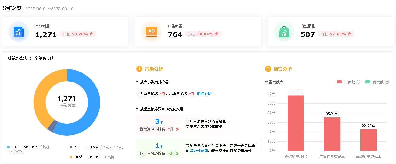 通过综合分析市场大盘趋势、广告投放效果及流量变化等多个因素,迅速识别导致销量下滑的关键原因,为业务调整提供数据支持